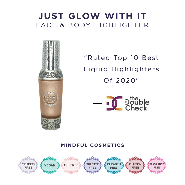 هایلایتر مایع Just Glow With It از برند Pretty Vulgar برای تمام انواع و رنگهای پوست طراحی شده است. این محصول حاوی ذرات صدفی بازتابدهنده نور است که نواحی برجستهی صورت و بدن را درخشان میکند.