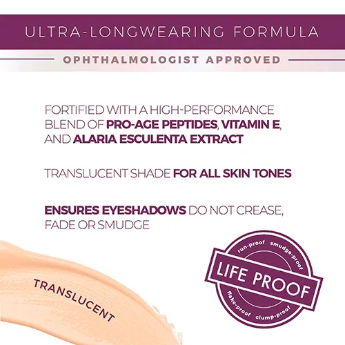 یک پرایمر سبک و شفاف که پایه‌ای صاف و یکدست  برای آرایش چشم ایجاد می‌کند و مانع خط افتادن، پخش شدن یا محو شدن سایه در طول روز  می‌شود — در حالی‌که همزمان سلامت و زیبایی پوست را بهبود می‌بخشد.